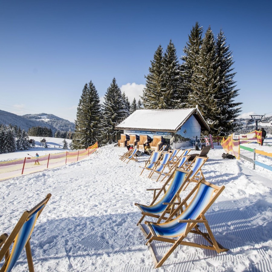 Im Skigebiet haben wir für alle Wintersport-Gäste zwei Sonneninsel-Ruheoasen eingerichtet. Das besondere dabei: es gibt keine Verköstigung und keine störende Musik - nur Ruhe zum Sonnen und Träumen - Erholung pur. Auf die Gäste warten eigens von der Nordsee "importierte" Strandkörbe und Liegestühle. Bei der größeren der beiden Sonneninseln haben wir kostenloses W-Lan für unsere Gäste bereitgestellt.